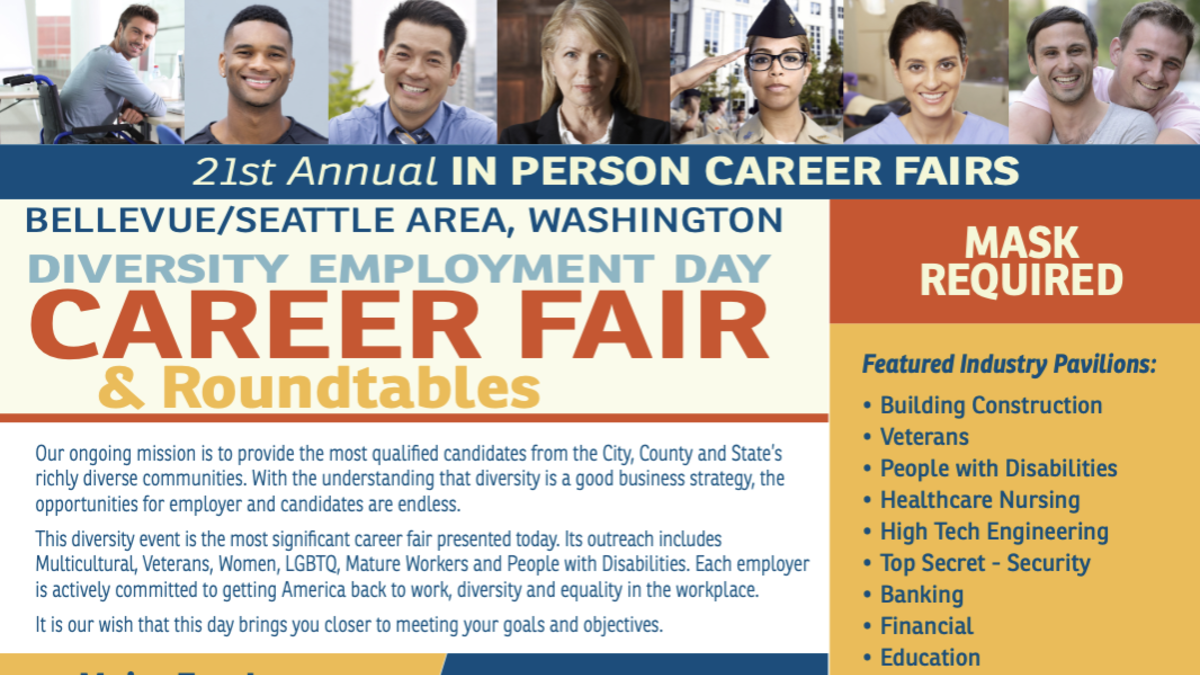 Multicultural, Veterans, Women, LGBTQ, Mature Workers and People with Disabilities. Each employer is actively committed to getting America back to work, diversity and equality in the workplace.