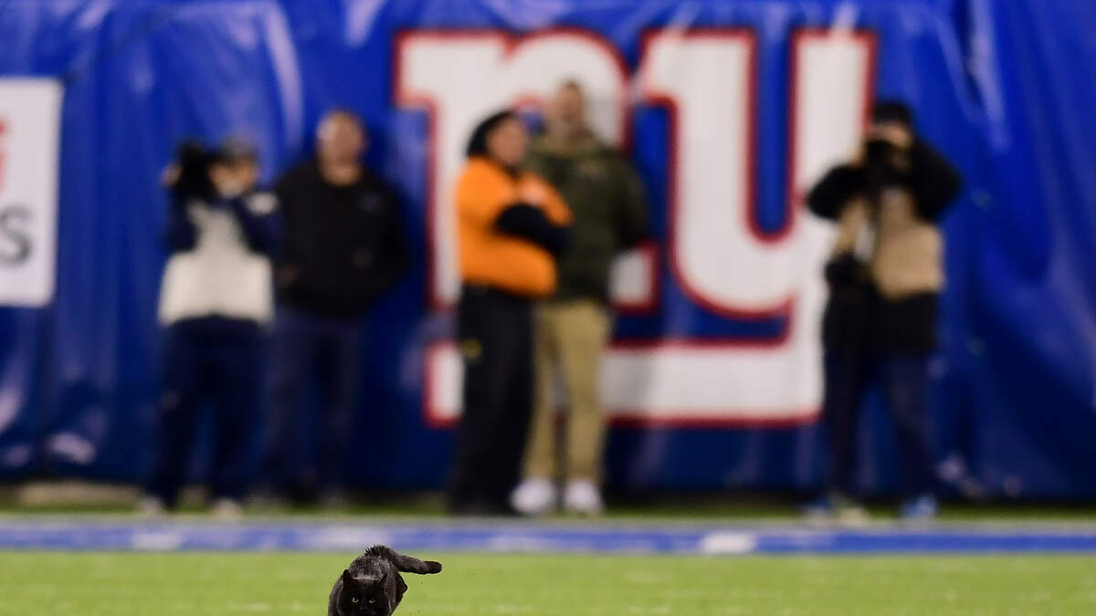 It appears that the poor confused cat may have been released by a fan, during the Giants’ vs Cowboys in Week 9 at MetLife Stadium for Monday Night Football.