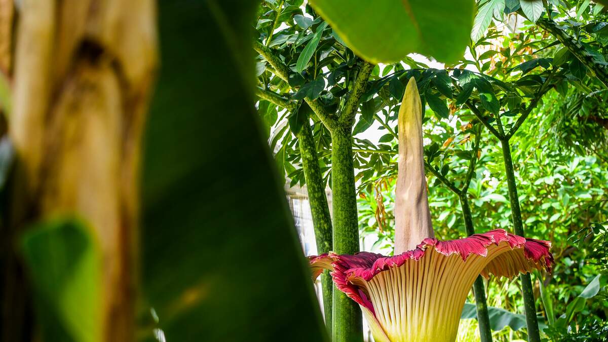 This once in a quarter century erection is worth the wait because it is massive! The Amorphophallus decus-silvae is a huge plant that is peculiarly shaped and that makes me feel like mother nature has a great sense of humor! One of these plants just bloomed in the Netherlands!